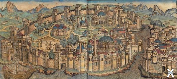 Сколь трудно было Магомету поместить свою многочисленную армию на тесном пространстве между Золотым Рогом и морем, столь же непросто было и Константину растянуть свои малые силы по городским стенам, достигавшим в длину 60 верст и имевшим 28 ворот. Вся эта линия была разделена на части, от одних ворот до других, и начальство над каждой было вверено самым опытным военным. Так, против Романовских ворот стал Джустиниани с тремя сотнями итальянских стрелков; справа от него стену защищали храбрые братья Троилли, Павел и Антон, а слева - до замка Семи Башен, генуэзец Мануэц с 200 лучниками; адмирал Лука Нотарес начальство-вал по стене против Золотого Рога, где стояли 15 греческих кораблей, защищенных перекинутой с одного берега на другой железною цепью. Внутри города, у церкви святых Апостолов, поставили резерв из 700 человек, который должен был поспевать всюду, где потребуется помощь. В самом начале осады на военном совете было решено беречь свои малые силы как можно больше, вылазок не делать, поражая неприятеля из-за стен.