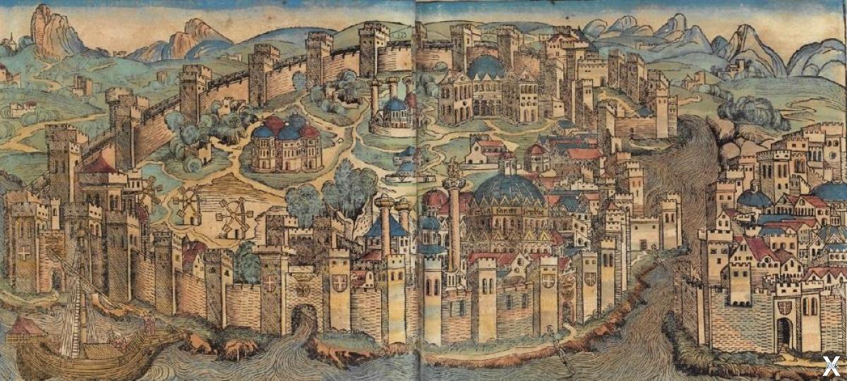 Ма войска, огибая городскую стенугомет расположил свои. Кроме сухопутных сил, у турок стояло на море против Царьграда до 400 судов, хотя собственно военных галер было только 18.