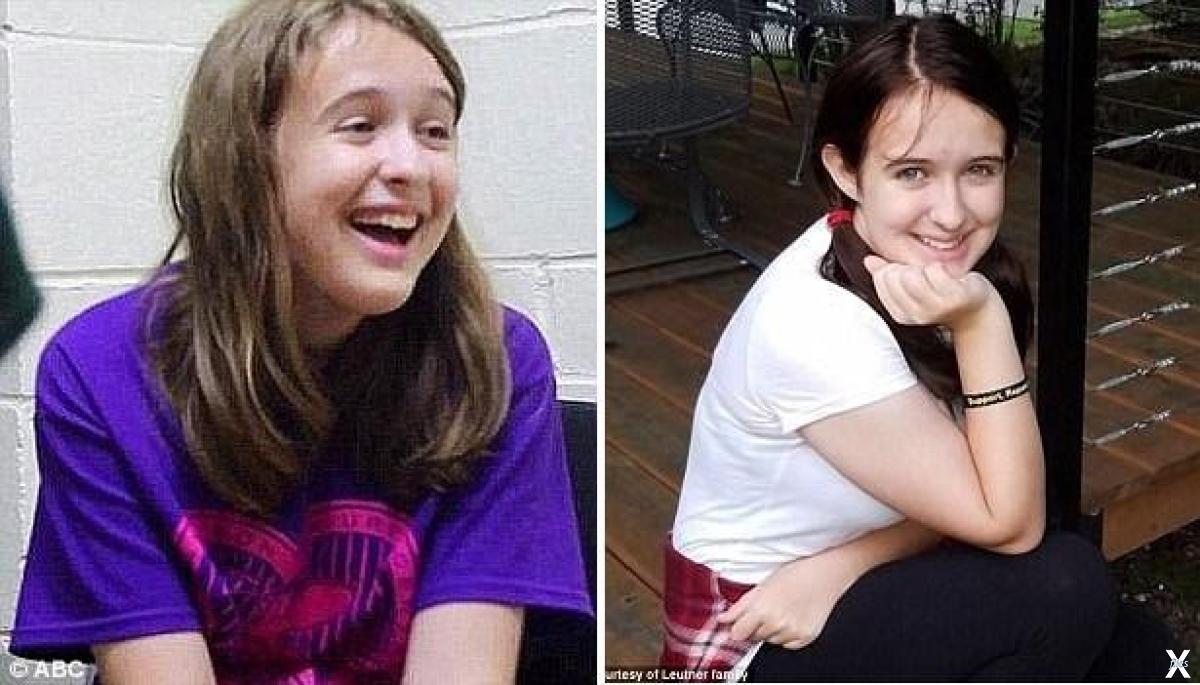 На фото Пейтон Леутер в 12 лет (слева) и в 15 лет