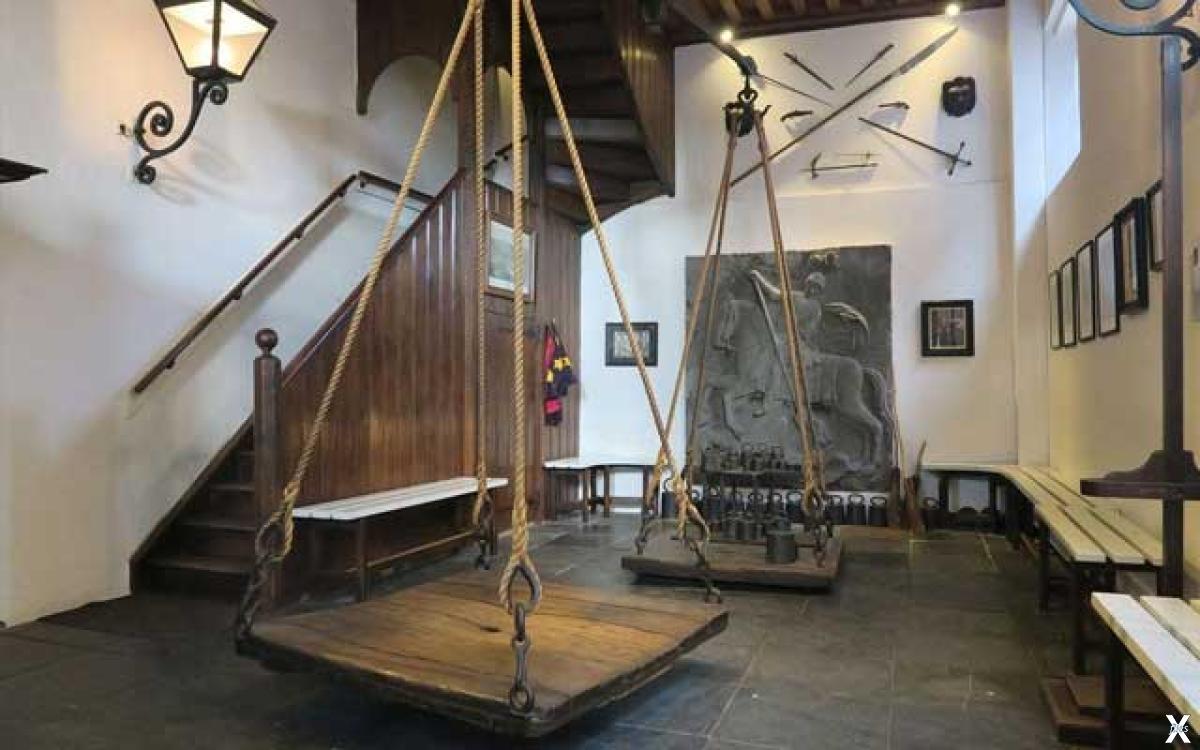 В весовой палате было установлено несколько весов различных размеров. Женщина становилась на одну чашу весов, а на другую устанавливались чугунные противовесы. Если у взвешиваемой оказывался «правильный» вес, тогда она получала сертификат, который подтверждал ее невиновность.