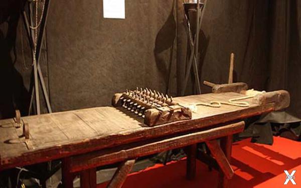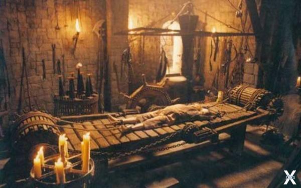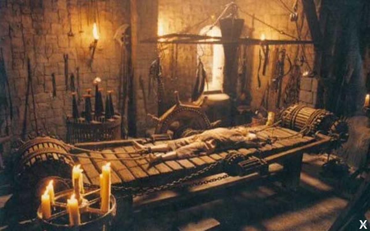 Дыба обычно представляла собой металлический каркас, на одном конце которого (или на обоих концах) располагался деревянный вращающийся вал. Руки несчастных привязывали к одному валу, а ноги (за лодыжки) – к другому. Во время своих допросов палачи использовали валы, чтобы увеличить давление на суставы и кости, растягивая их.