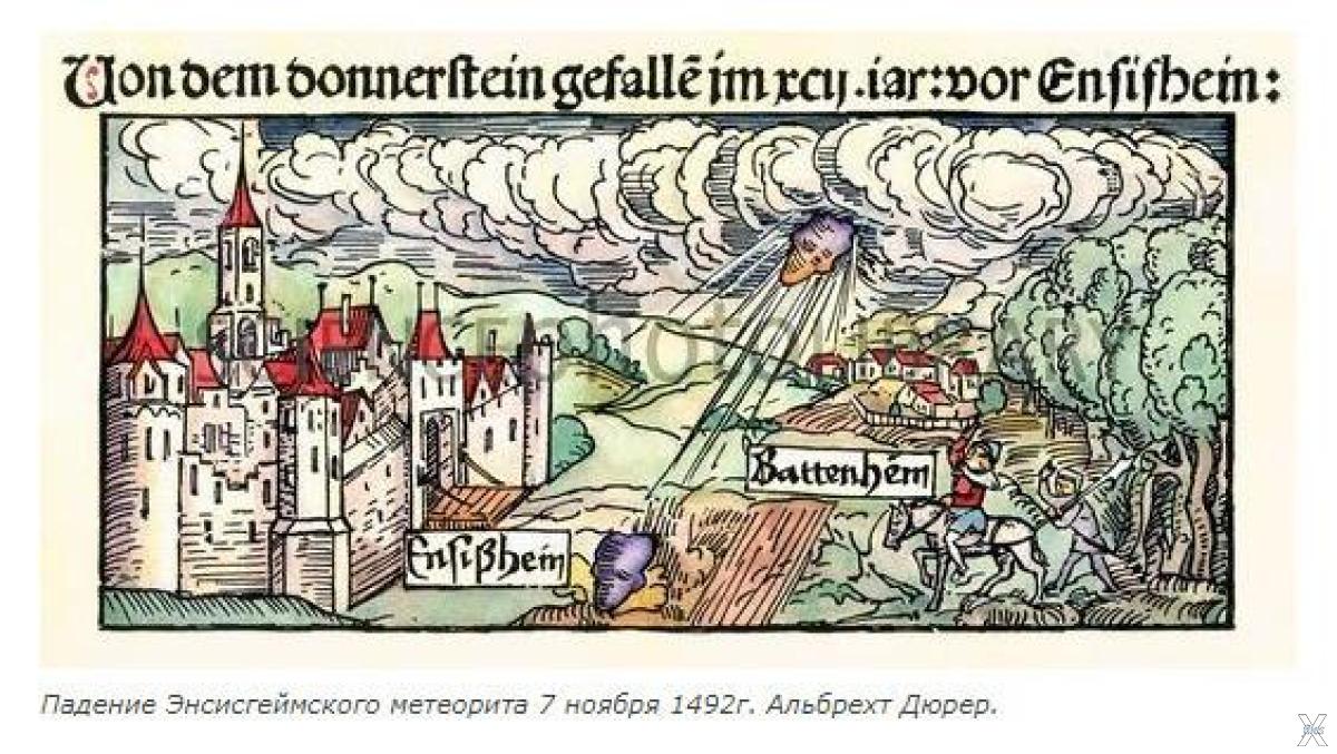 И вот почему мне кажется, что этот «метеорит» не совсем метеорит. Точнее, он был не один, и падали они в различных местах, иначе как объяснить тот факт, что Дюрер нарисовал множество рисунков, на которых одно и то же событие, изображено совершенно по-разному?