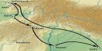 Переход армии Тимура через Гиндукуш не вошёл в легенды подобно маршу Ганнибала через Альпы, а зря! Двигаясь по маршруту через перевал высотой в три с лишним тысячи метров, солдаты Тамерлана были вынуждены то и дело вступать в схватки с воинственными и дикими обитателями этих мест. Шли они только по ночам, когда лёд под ногами подмерзал и становился более прочным. Но даже это не помогало. Один Аллах ведает, сколько воинов амира так и не увидели далёкую Индию, сорвавшись в пропасть или пав от стрел воинственных горцев.