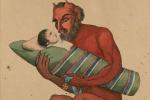 Карикатура с красным чертом, укачивающим Наполеона как ребенка