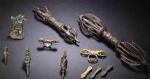 Предметы на этом фото, несмотря на статус антиквариата, суть обычные сувениры, и дата их появления на свет весьма сомнительна. Настоящие ваджры имели внутри железный сердечник, как например на самой большой справа, что можно разглядеть. И этот сердечник был скорее всего подвижным. Ну и у каждой настоящей ваджры должен был быть выход на тот самый бронешланг. Его нет нигде.
