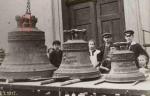 Определить колокола дохристианского периода достаточно просто. На их «ручках» почти всегда присутствуют «рожицы», как на этом фото, или следы их спиливания. И вместе с тем, по оси таких колоколов всегда присутствует обведённый предмет. Что это? На новоделах он уже отсутствует. Данные колокола когда-то имели продолжение вверх, на подобие бронешланга. Как это выглядело, мы уже не узнаем. Сравните этот обведённый предмет с наконечником инструмента у рабочего с французской верфи. Сходство очевидно, только рёбер нет. Здесь не плавился металл, энергия просто переходила в другой вид. Энергетика прошлого имеет абсолютно такие же физические свойства.