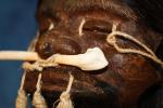 Естественно, в процессе сушки кожа с головы ужимается. Но длина-то волос остается неизменной! Вот почему шевелюры на тсантса кажутся непропорционально длинными по отношению к размерам головы. Бывает, что их длина достигает одного метра, однако это не означает, что тсантса была сделана из головы женщины: среди ачуар до сих пор многие мужчины носят более длинные волосы, нежели женщины. Впрочем, хоть и не так часто, попадаются и уменьшенные женские головы.
