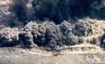 Столб дыма, окрашенный выделениями окислов азота при разложении аммиачной селитры