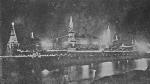Догадайтесь, где это и когда? Правильно, Москва, сверху — ГУМ, снизу — набережная Москвы-реки. Фото с коронации того же Николая II в 1896 году. При коммунистах такого не было никогда, да и сейчас тоже. Маленький вопрос для школьника: «Какой должна быть мощность электростанции, если на один погонный метр линии освещения всего этого уходило 4 лампы по 25 Вт?». Он, скорее всего, ответит (если продвинутый), что таких электростанций в Москве того времени быть не могло. И будет прав. Это тоже иллюминация, не потребляющая внешнее электроснабжение искусственного происхождения. Как ни странно, здесь тоже всё делалось посредством эфирных конденсаторов. Бесплатно.