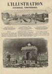 Упс… опять люстры Чижевского, только висящие и стоящие. Обратите внимани: какой масштаб конструкций относительно роста людей. Очевидно, купольное сооружение настоящее, стоящие на постаменте ёлочки тоже, скорее всего, имели место быть, а ёлочки с боков картины, скорее всего, художественный вымысел. Глядя на свет этих ёлочек, не вызывает сомнения, что это электрический разряд. Как уже было видно по вышеприведённым гравюрам, свет идёт не от отдельных свеч, а от всей конструкции ёлочки в целом, в местах наибольшей концентрации электрического поля. Ещё обратите внимание на светящийся круг в районе купола. Есть во французской жёлтой прессе XIX века рекламные объявления по продаже некоторых артефактов: