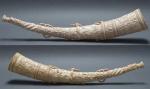 Они сделаны, по-видимому, для местных лидеров, и у них нет концевых мундштуков. Отверстия для вдувания воздуха сделаны с боку, что является нормой в Африке. Вы также можете видеть, что эти олифанты не так переполнены украшениями. Это была адаптация, которую эти местные резчики сделали для иностранных заказчиков согласно их вкусов.