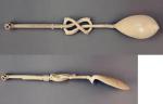 Ложка XVI века, вырезанная из цельного куска слоновой кости. На верхней части ручки вырезан крокодил, центральная часть ручки имеет петлю в виде двойной восьмёрки со змеями по бокам. Относится к предметам, сделанным для португальского рынка в 15-м и 16-м веках. Такие предметы отображают смесь африканских и европейских элементов и мотивов в их общей форме и орнаменте и считались предметами престижа во всей Европе