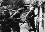 Август 1941 года, Восточная Украина, бои в рамках Киевской оборонительной операции. Немецкие солдаты проверяют наличие людей в сельском доме