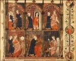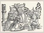 Демон подписывает договор с монахинями. Средневековый рисунок