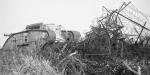 Танк разрушает проволочные заграждения в ходе тренировок перед началом Битвы при Камбре, октябрь 1917 года