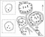 В центре каждого комплекса находятся два параллельно стоящих антропоморфных мегалита, все ориентированные примерно одинаково на юг. Эти центральные мегалиты окружены кольцом мегалитов меньшего размера (в комплексе D, наиболее высоком, их ровно 12).