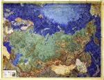 Еще один известнейший экспонат советского павильона — мозаичное панно «Индустрия социализма». Это физико-географическая карта СССР размером 5,91×4,5 м, созданная в технике флорентийской и русской мозаики. Карта, кстати, не символическая, а абсолютно достоверная. Панно состоит больше чем из 45 тыс. пластин цветного камня, основные промышленные предприятия СССР отмечены на нем ювелирными камнями. Оправы, надписи и различные линии сделаны из платинированного серебра (позолоченного). Масса всего этого великолепия — 3,5 т. Разработкой карты занимался художник-мозаичист Владимир Фролов. Набирали панно 150 человек.