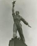 Скульптурный рабочий из нержавеющей стали, ставший венцом советского павильона, держал в поднятой руке рубиновую звезду — почти как горьковский Данко. 22-метровая скульптура стояла на 54-метровом обелиске из порфира. Автором проекта был Вячеслав Андреев — не самый известный советский скульптор (в отличие от, например, его старшего брата Николая). В конкурсе Андреев обошел таких мастеров монументализма, как Мухина и Меркуров.