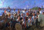 Специально для Всемирной выставки Василий Сварог написал картину «И.В. Сталин и члены Политбюро среди детей в Центральном парке культуры и отдыха имени М. Горького». В основу сюжета лег полулегендарный случай — будто бы в 1935 г. Сталин, Молотов, Каганович, Орджоникидзе, Андреев и Ежов прогуливались в парке, и их окружили дети. Ребята были, само собой, веселые, жизнерадостные и нарядные, а члены Политбюро — мудрые, добрые и открытые к диалогу. После беседы с детьми Сталин и компания общались с отдыхавшими неподалеку рабочими. По крайней мере, так писали в советских газетах.