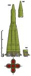 Р-7 - двухступенчатая межконтинентальная баллистическая ракета с отделяющейся головной частью массой 3 тонны и дальностью полёта 8 тыс. км.