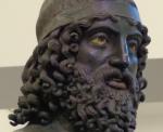 Голова молодого "воина Риаче". Обратите внимание, что губы сделаны из меди, зубы из серебра, а глаза из кальцита