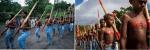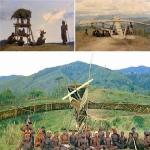 На проложенных просеках стояли соломенные самолеты. Смуглые тела аборигенов были раскрашены под военную форму с буквами USA и орденами. Они старательно маршировали, держа плетеные винтовки (на фото винтовки сделаны из палок).