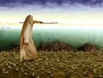Тогда Аарон поднимает жезл и ударяет им по воде речной. И вода в реке превращается в кровь. «И рыба в реке вымерла, и река воссмердела, и Египтяне не могли пить воды из реки; и была кровь на всей земле Египетской».