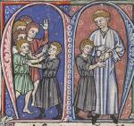 Гийом Тирский обследует принца. Миниатюра XIII века