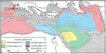 Карта Халифата. Желтым - сразу после смерти Мухаммеда, зеленый - после походов Халида