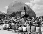 На высохшем дне озера в пустыне Мохаве недалеко от города Ландерса, штат Калифорния (США), находится массивная цельная гранитная скала, которая нависает над иссушенной землей как монолит, оставшийся от потерянной цивилизации. Громадный валун, названный просто “Гигантская скала” (Giant Rock), высотой в семь этажей и площадью в 539 квадратных метров, что делало его самым большим из отдельно стоящих камней в мире. Это грозное зрелище, и вполне понятно, что это место долгое время считалось священным для местных индейских племен. Они называли его сердцем Матери-Земли, а еще регулярно собирались тут, чтобы отпраздновать смены времен года и появление новых шаманов, которые проходили в пустыне “духовные испытания”...