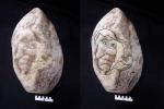 Чуть повернув камень, мы видим, как тот же биолог таким же образом берёт сперму у крупного животного.
