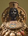 Это статуя богини Артемиды, которая была покровительницей всего живого на земле, плодородия, дающая счастье в браке и помощь при родах. Изображение немного романтизировано и дополнено символикой, но в его основе безусловно существовал реальный персонаж. А непонятные технические устройства, скульпторы стилизовали под знакомые символы, поэтому здесь нужно небольшое пояснение. Дело в том, что со времён их первого успешного опыта с крылатым львом, генетическая служба пришельцев сильно модернизировалась. Необычная корона очень напоминает технологическую коробочку для сбора спермы. И действительно, чтобы вызвать эякуляцию у крупного животного нужно приспособление достаточно крупного диаметра, в котором должен помещаться и вибромеханизм и батарея. То, что он расположен на голове совсем не означает, что специалист генетик делал это головой, держа животное за задние ноги. Возможно это просто эргономичное решения в компоновке и без того перегруженного скафандра. Кстати пришельцы очень рациональны, и могли использовать этот необычный головной убор для узнаваемости генетика, животными. Ведь все, кто держал, когда ни будь корову знают, что это приученное к дойке животное не подпускает к себе человека в другой одежде. И моей маме, чтобы подоить нашу корову приходилось одевать бабушкин платок и халат, в котором та её постоянно доила. Так называемые многочисленные груди, это эластичные контейнеры с добытым генетическим материалом.