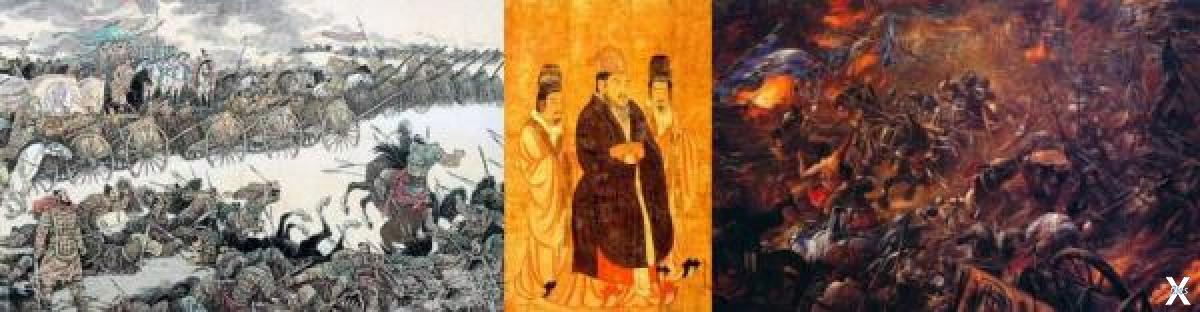 Битва при Чампине (260 г. до н.э.) По центру: правитель династии (зарисовки). Чжао