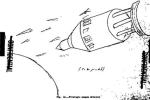 Зарисовка одного из возможных военных применений взрыволёта типа «Orion»: нанесение массированного ядерного удара по наземным целям с орбиты. Архивная иллюстрация из книги Джорджа Дайсона «Project Orion. The True Story of the Atomic Spaceship» (2002)