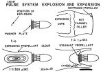 Схема действия атомного заряда (импульсного блока) при разгоне взрыволёта. Архивная иллюстрация из книги Джорджа Дайсона «Project Orion. The True Story of the Atomic Spaceship» (2002)