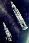 Два взрыволёта «Orion» готовятся к полёту на Марс. Архивная иллюстрация из коллекции Скотта Лоузера