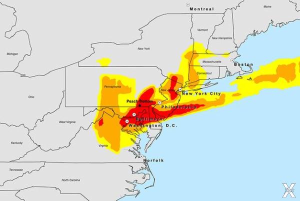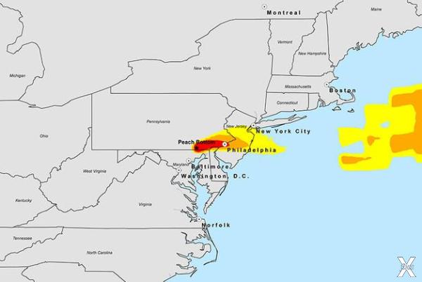 Физик Фрэнк Фон Хиппель (Frank von Hippel) подсчитал, что в случае возгорания на одной из старейших АЭС в городе Пич-Боттом (штат Пенсильвания) под облаком радиации окажется территория, вдвое превышающая площадь Нью-Джерси (около 50 тысяч квадратных километров). Это приведет к эвакуации восьми миллионов человек, а финансовые убытки составят два триллиона долларов.
