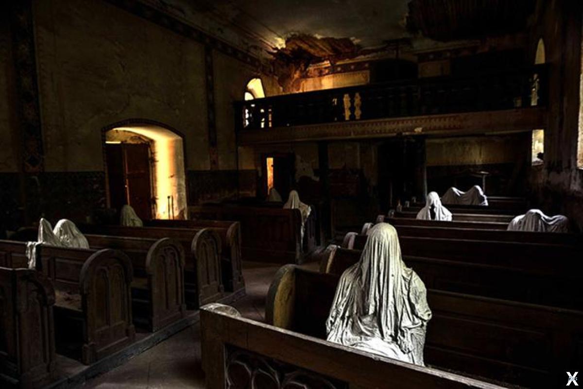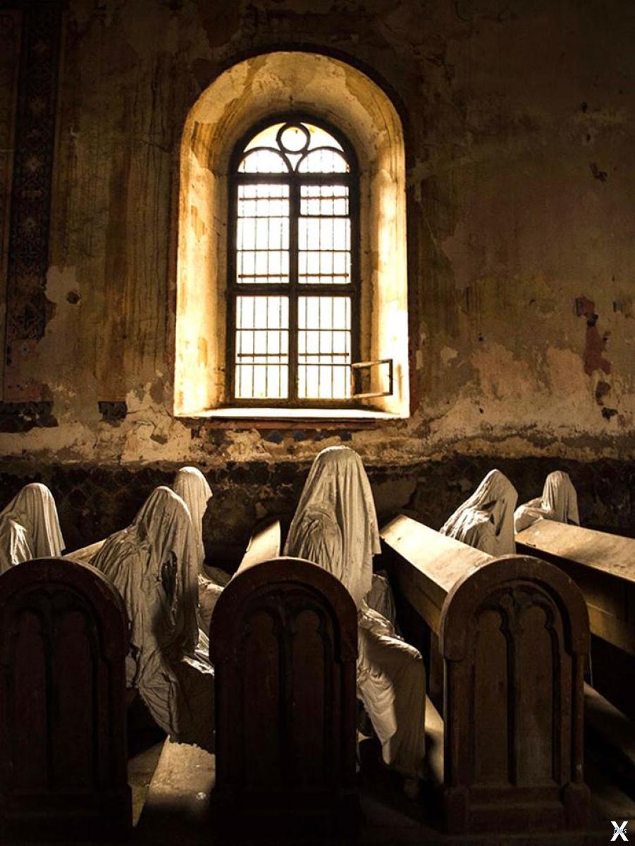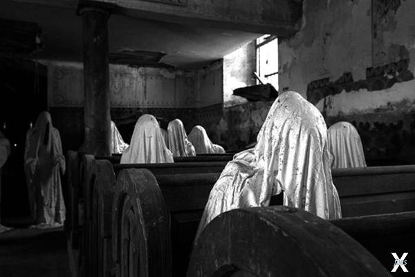 Мурашки по коже и липкое безнадежное ощущение страха. Темное здание, окруженное кладбищем, скрипящие полы, холод. Вы проходите внутрь и видите призраков — белые, мерцающие в полутьме костела фигуры, которые заполнили все пространство от входа до алтаря. Они сидят на скамьях, возвышаются в проходе и у самых стен, стоят близ кафедры, и вместо лиц на вас взирают черные бездонные дыры...