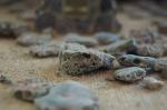 Сферолиты размером один-два миллиметра встречались в элементах жилых построек, среди костей животных и в тонком палеопочвенном слое, где они составляли до 1,6 весового процента. У большинства — шероховатая поверхность и внутренняя пористость, что позволяло им плавать на поверхности воды после извлечения из осадочных пород. Подобные стекловидные образования, только значительно более крупные, находили в свое время на месте первого в мире испытания ядерного оружия "Тринити", проведенного в июле 1945 года в штате Нью-Мексико — во время взрыва там плавился и кипел песок.