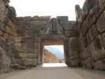 Главный вход, микенские Львиные ворота, поражал всех видевших его, заставлял уверовать в несокрушимость государства. Ворота исполнены по современным меркам просто — четыре сложенных монолита из известняка украшает рельеф с изображением львиц и колонны.