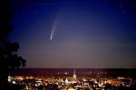Этим летом самым ярким украшением ночного неба стала комета Neowise, которая оставляет за собой шлейф из двух хвостов сразу. Первый хвост - голубой, он состоит из газа и ионов. Второй хвост золотистый и сделан из кометной пыли. Она была открыта 27 марта 2020 года, и названа в честь открывшего ее телескопа. Астрономы называют ее самой яркой кометой за последние семь лет. Благодаря своей “фотогеничности” и доступности для наблюдений, Neowise была запечатлена на множестве профессиональных и любительских снимках. Ее прекрасно видно даже на фоне городских пейзажей, и мы предлагаем полюбоваться лучшими видами небесной странницы.