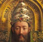Господь Бог в украшенной рубинами и другими камнями тиаре. Фрагмент "Гентского алтаря" Ван Эйка