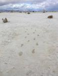 Следы, цепочка которых протянулась на 1,5 километра, обнаружены в национальном парке Уайт Сэндс в штате Нью-Мексико (White Sands National Park in New Mexico, US). Человеческие ступни отпечаталась в грязи давным-давно высохшего озера, превратившегося ныне в живописное плато белого цвета...