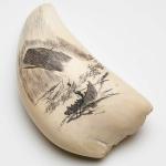 Резьба на зубе кашалота: кошмар китобоев, разъяренный кит и только маленькая лодка между ними, 1840 год