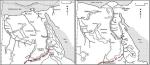 Однако направление течения было к югу. Нил же (точнее его предшественник, т.н. Эонил) возник около 6 млн. лет назад, когда Средиземное море высохло из-за закрытия Гибралтарского пролива. Течение воды в сухую морскую котловину глубиною более километра привело образованию глубокого каньона Эонила, который «перехватил» реку Кена (рис. 3, панель справа), обратив течение в ней на обратное. Так сформировался приток Эонила, который по положению и направлению течения соответствует Нубийской реке старинных карт.
