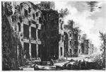 Основной его работой стало многотомное издание офортов под общим названием «Римские древности». В предисловии к данному сборнику Пиранези говорит о том, что ему было невыносимо наблюдать за тем, как множество останков античных сооружений Рима и памятников древности, что были разбросаны повсеместно на обрабатываемых землях, исчезали из-за ущерба, наносимого временем и владельцами земель, как их растаскивали для строительства новых зданий. Именно поэтому, он решил сохранить эту память посредством гравюр. Это указывает на то, что мастер в данных работах пытался детально изобразить городские пейзажи. Давайте посмотрим на них.