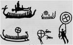 Ладья мертвецов и крест - звезда. Прорисовка наскального рисунка. Онежское озеро. Карелия