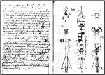 «Рукопись Сибиу - первый документ, в котором подробно описано ракетостроение. Автором этих рукописей принято считать средневекового изобретателя Конрада Хааса, который описывал в рукописи успешный запуск многоступенчатой ракеты в 1555 году.