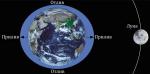 Здесь показаны главные амфидромические точки в океанах. Вот она какая истинная (не школьная) картина приливов и отливов. Вероятно, истинный механизм никак не связан с движением Луны вокруг Земли. Иначе бы Землю огибал приливной горб из воды, двигающийся по долготе. Причем, он будет двигаться со скоростью 1600 км/ч ровно под Луной (или в след за Луной) – и выше скорости звука. Угловая скорость движения Луны по небу – 33 угловых минуты в час. А скорость ее орбитального движения - 2681 км/ч.