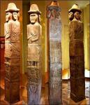 Потому что так их описывает в начале Х века ибн-Фадлан. Еще похожи на артефакты славянских деревянных резных фигурок XI-XIII веков. Называются — апотропейные изображения божеств. Или «группой бытовых предметов с многоликим завершением». Это следующая ступень эволюции язычества, смена культа «один бог — один идол». Но до создания Пантеона Збручского идола — должна была пройти еще сотня лет, как минимум. При условии жесткого процесса централизации культов. Как на острове Рюген. Этого времени христианизация… не дала языческой Руси.
